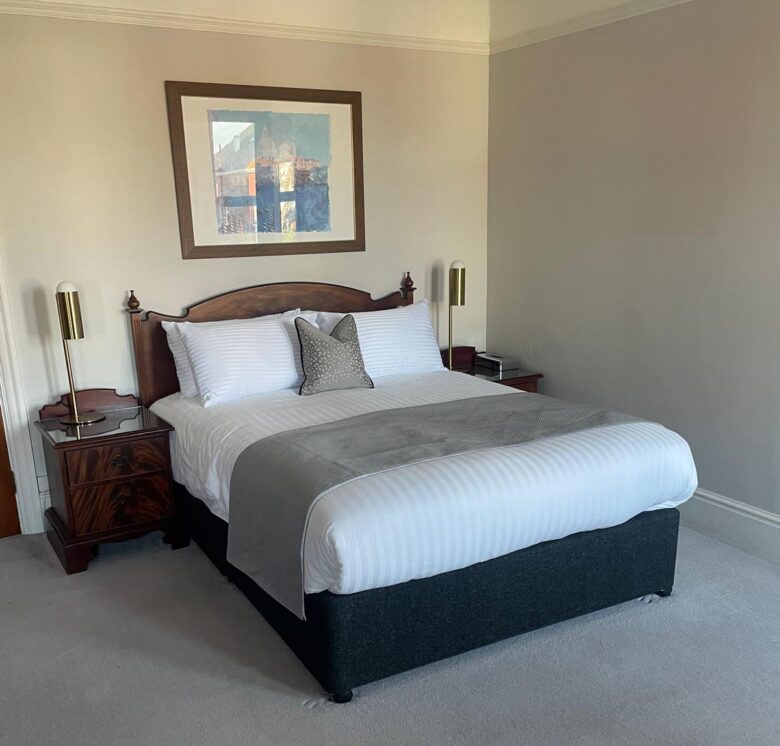 Our bay window fronted Deluxe King Rooms provide generous space and an abundance of natural light. Each room features a large ensuite bathroom with a beautiful rolltop bath, a kingsize bed, and refined soft furnishings. With their spacious proportions and elegant design, these rooms are perfect for a special occasion or an unforgettable weekend away. All Deluxe King Rooms have ensuite bathrooms as well as tea/coffee making facilities.